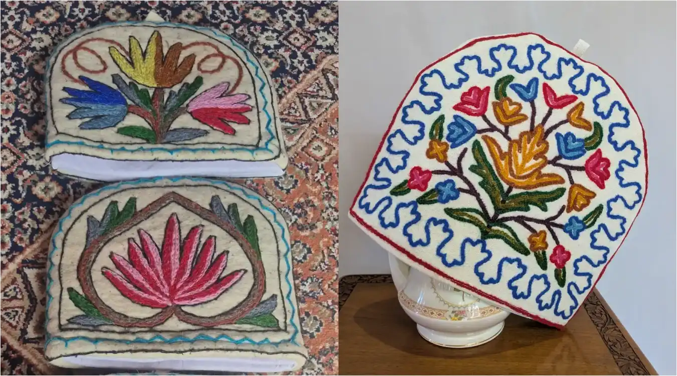 Our clothing collection features the finest Kashmiri suits, sozni and tilla embroidered kurtis, woolen stoles, kani shawls, pashmina scarves, and classic phirans for men and women alike. For your home, explore exquisite paper maché art, chainstitch rugs, walnut wood items, copperware, and elegant accents like cushion covers, runners, and wall décor.