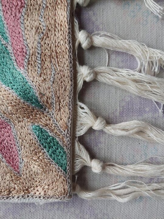 | Craftmanship | Handmade chain-stitch embroidery |