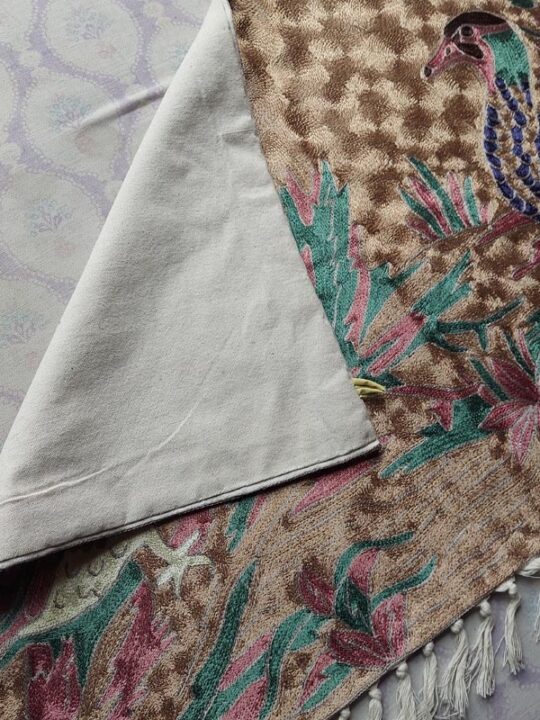 This isn’t just a wall hanging; it’s a breathtaking artistic tapestry waiting to transform your living space. Handcrafted in the rich tradition of Kashmiri chain stitch embroidery, this beautiful wall hanging boasts captivating botanical motifs that whisper of India’s vibrant heritage.