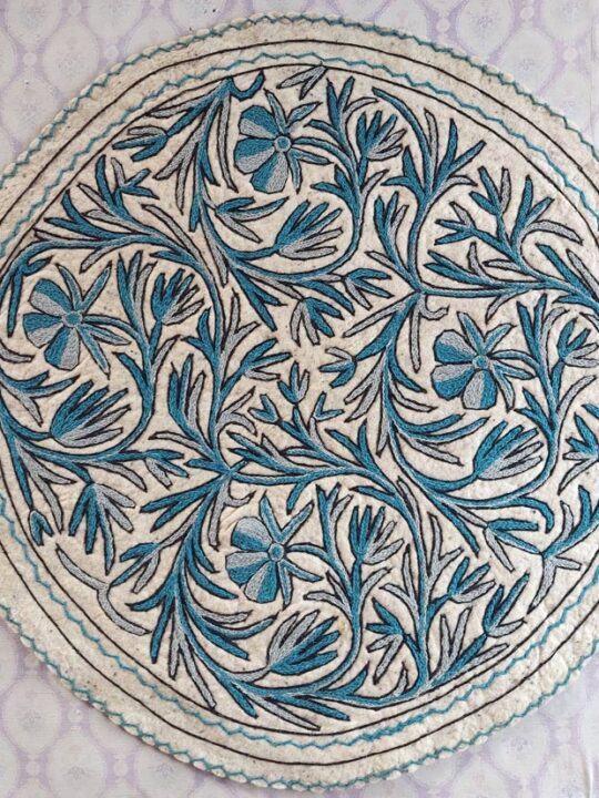 This beautiful round Namda rug has Dimension 4ftx4ft. It is made of sheep wool and embroidery is done by hand one it