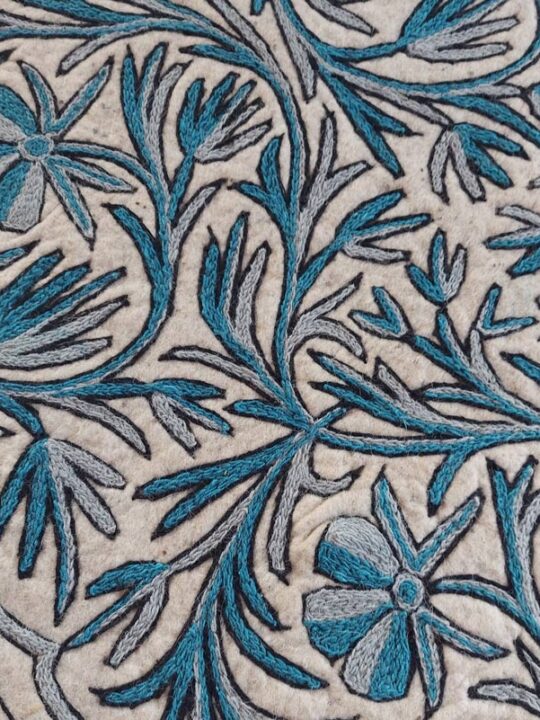 4×4 Blue Flora Handmade Aari Embroidered Wool Namda
