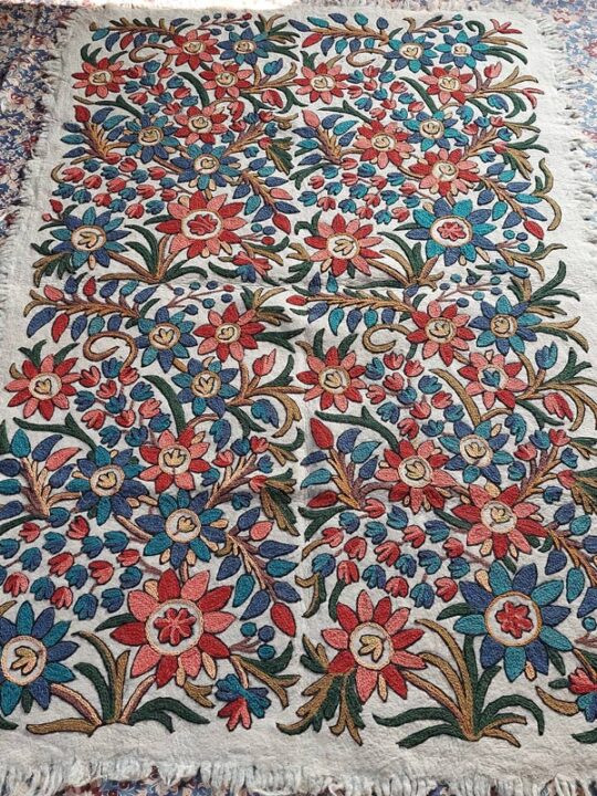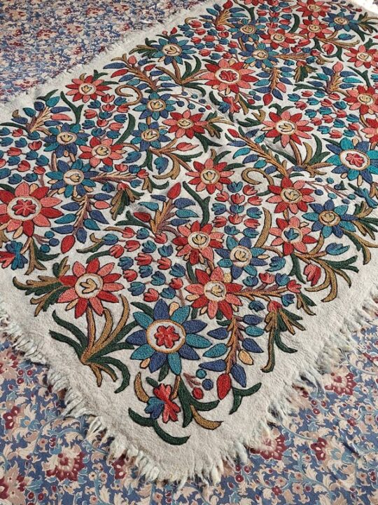 6×4 Floral Double Work Handmade Aari Embroidered Wool Namda