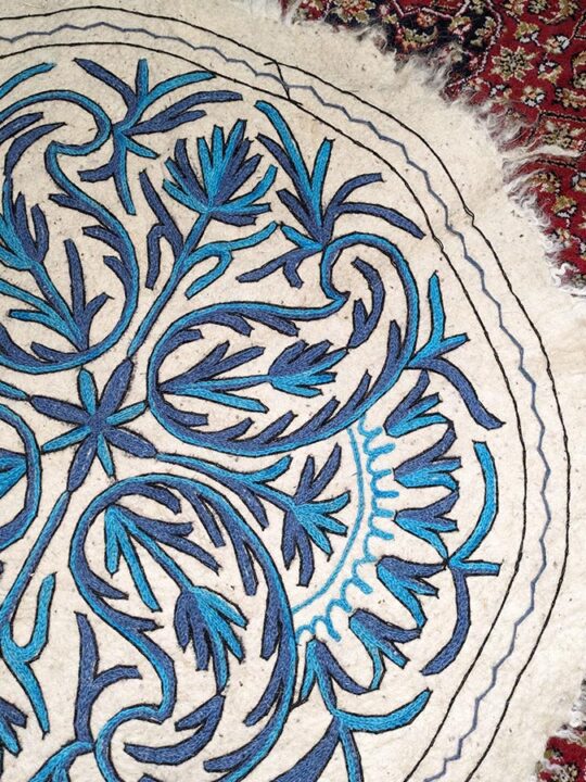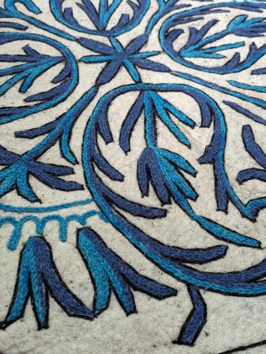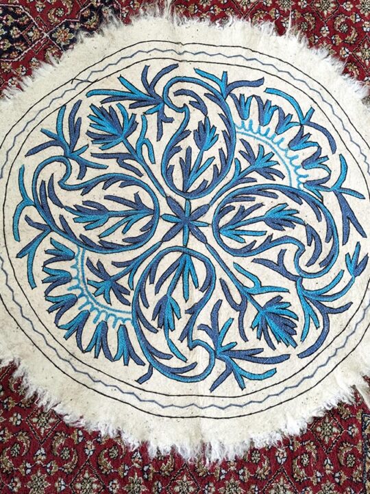 This beautiful round Namda rug has a diameter of approximately 3FT or 93 cm. It is made of sheep wool and embroidery is done by hand on it.
