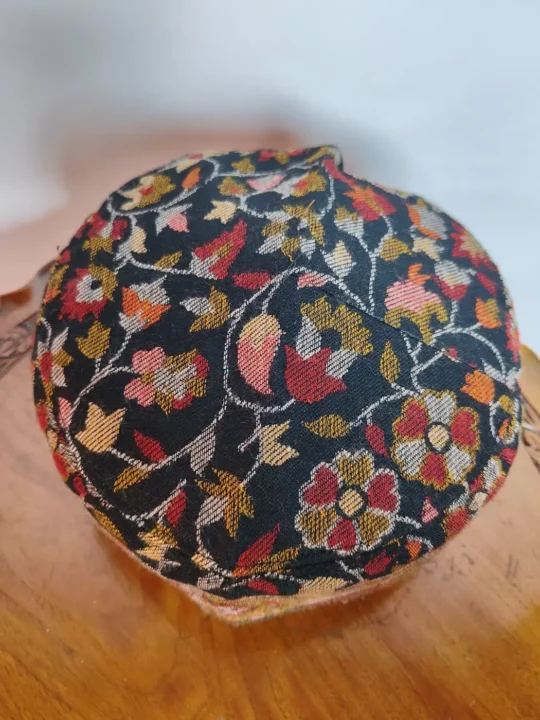 Crafted in black Kani shawl weaving, this designer caps reflect Kashmiri heritage with fine woven patterns. It warmth, soft touch, and comfortable winter wear, suited for daily use.