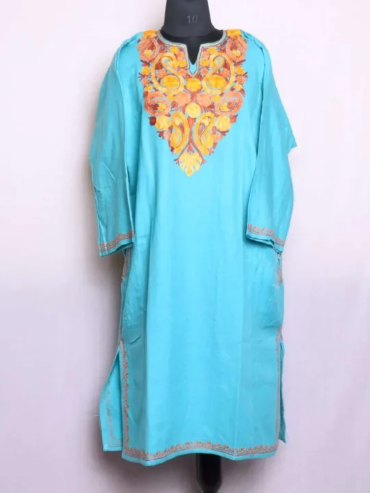Note: The actual color of the pheran may differ slightly due to photography effects