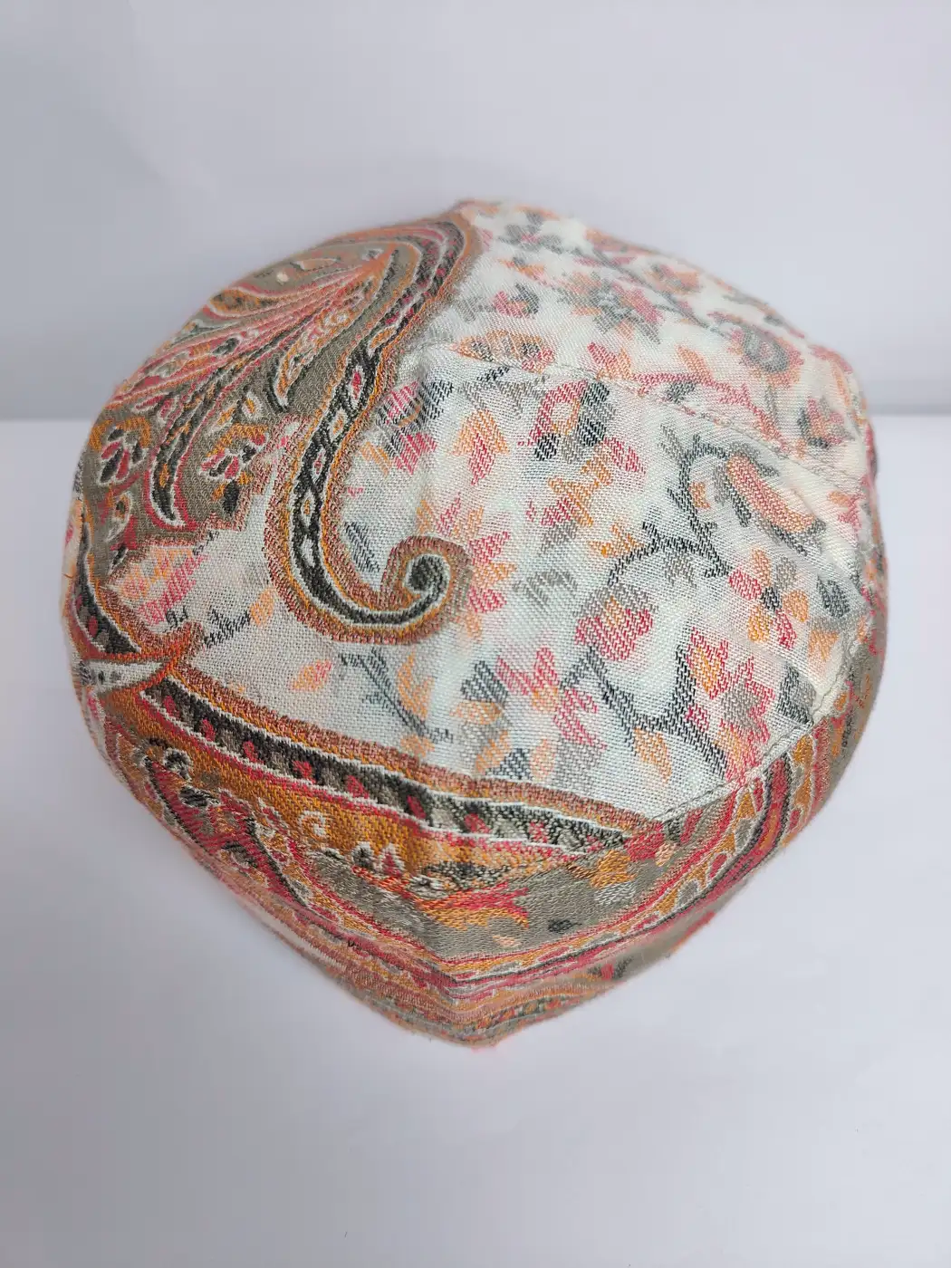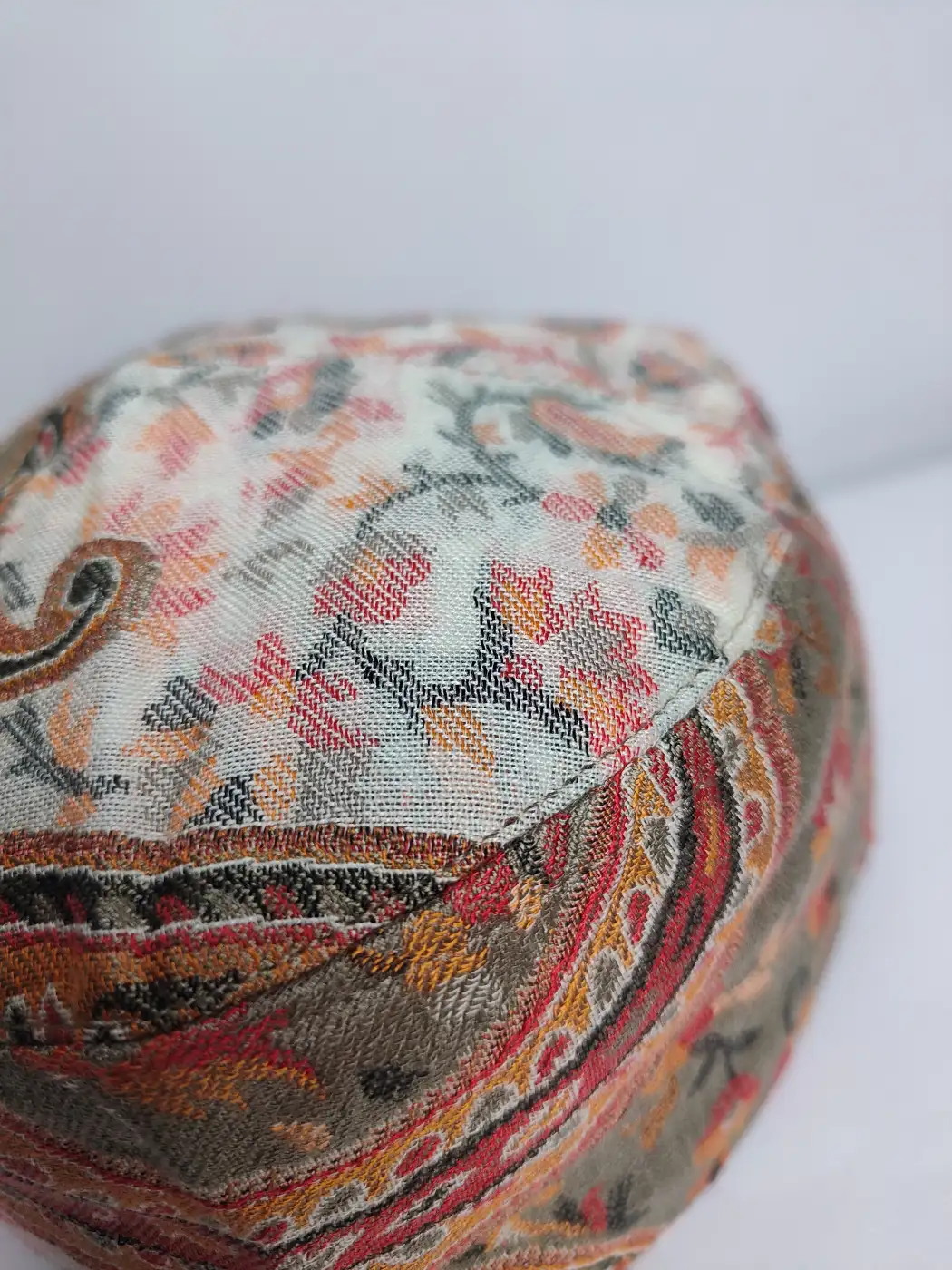 Rich kani shawl weaving define this classic Kashmiri kani cap with elegant Kashmiri craftsmanship. The floral embroidery of this topi adorns all over it.