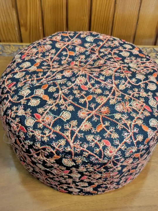 This cap inspired by the historical Bagh-i-Dilawar Khan, known for its cultural significance. The fine Sozni embroidery on Toosha fabric gives it a rich and classic look.