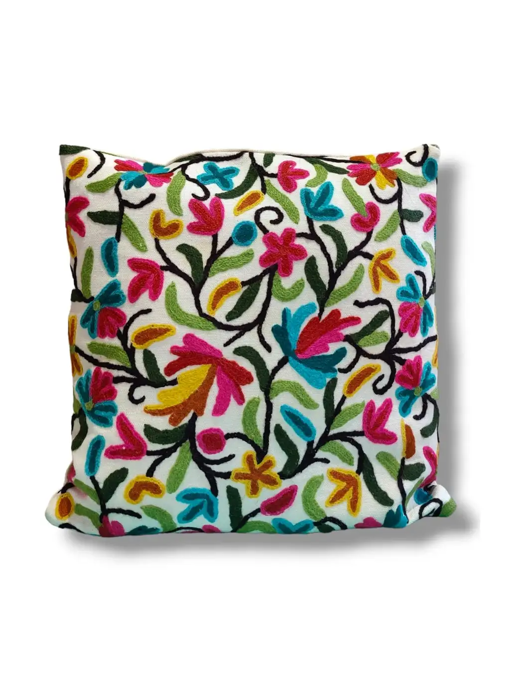 Bahar Kashmiri Hand Embroidery Crewel Cushion Cover – Set of 2 (16×16 Inches)