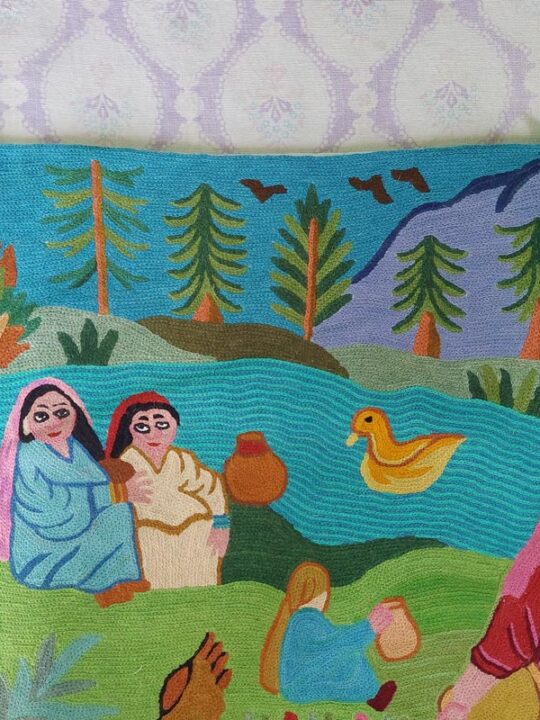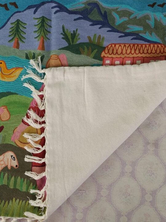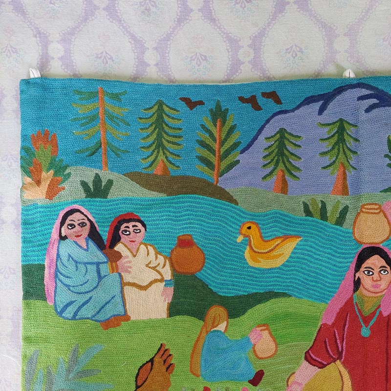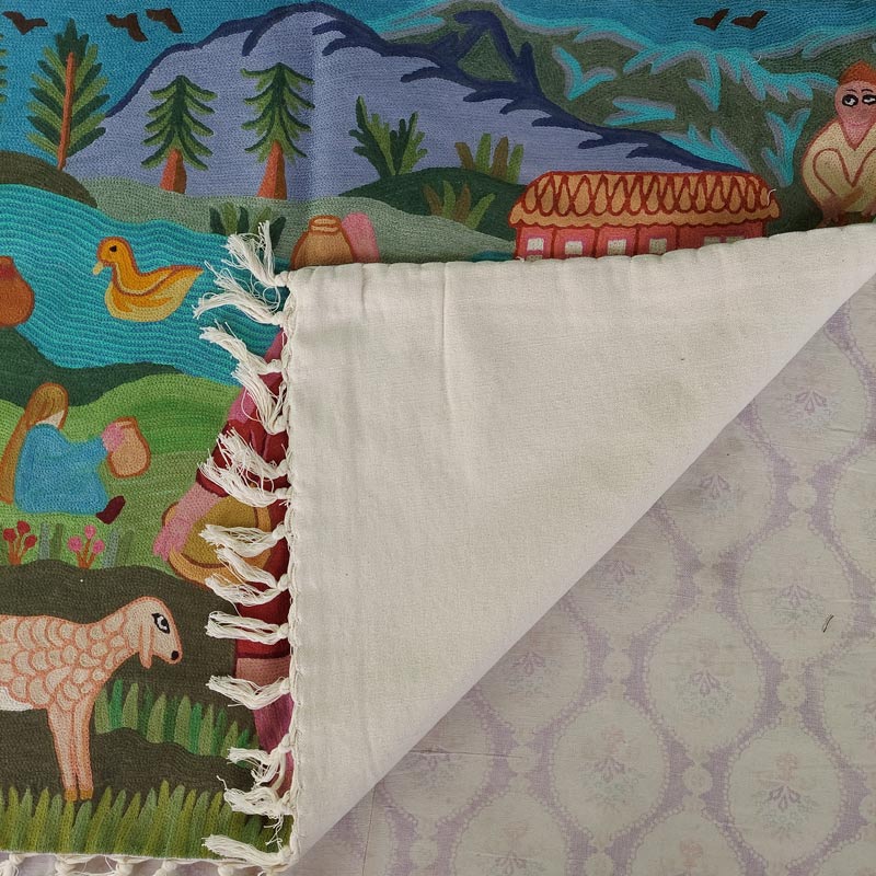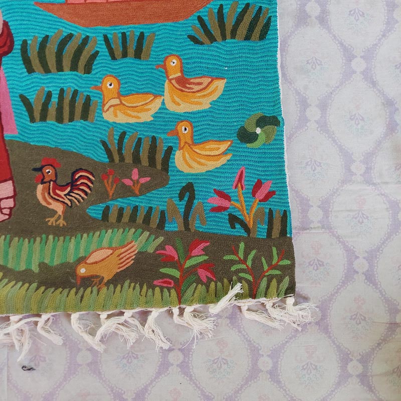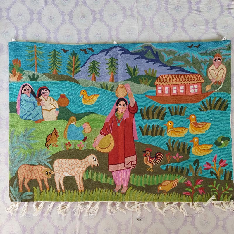 This is a beautiful Handmade Kashmiri scenery chain stitch wall hanging. This wall hanging can be hung in your home with 3 hooks in it.