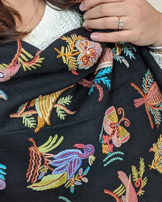 This is a masterpiece created by Kashmiri artisans. It had bird design hand sozni work done over it.