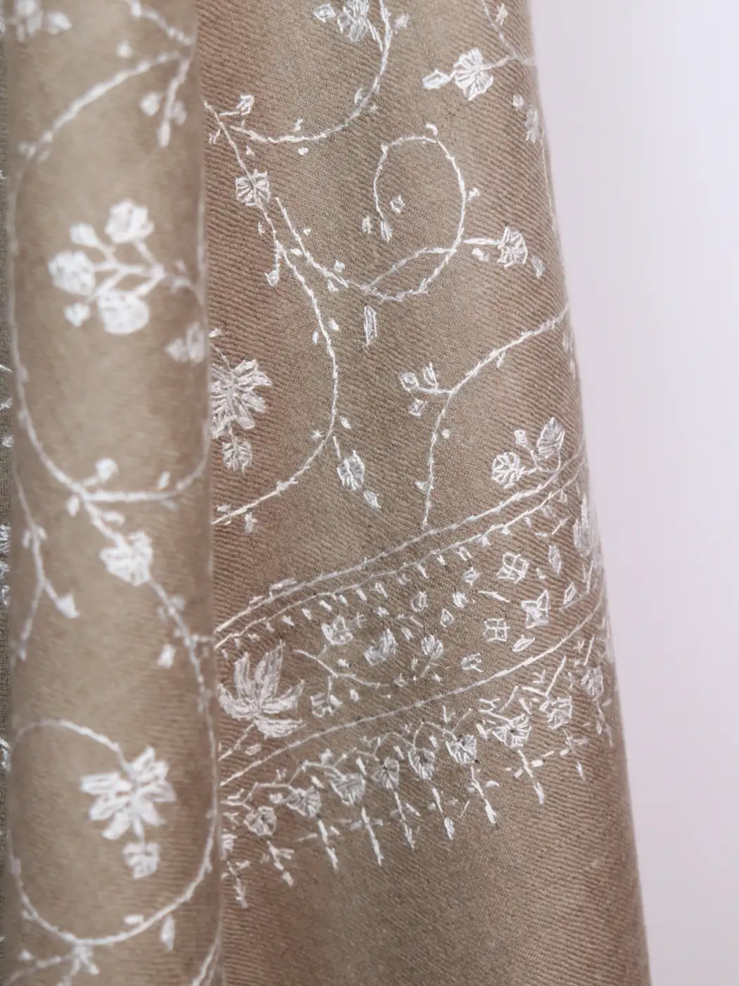 This piece is carefully made in Srinagar, Kashmir, by skilled artisans, making it a true representation of traditional hand embroidery on pure pashmina
