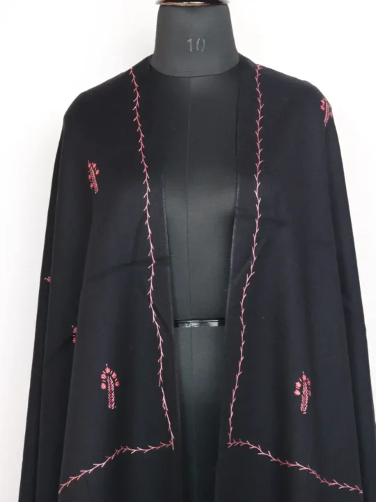 A shawl crafted in cashmilon wool with continuous Hand Sozni embroidery at the border and floral motifs at the corners — it has been made for women who like subtle craft. This shawl from Kashmir offers a soft, textured finish and is priced at 1248.