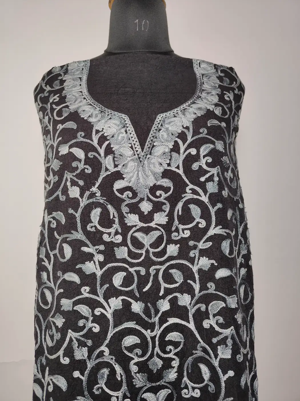 All-over badami jaal embroidery gives this black crush cotton 2pc unstitched suit set a flowing, complete look. The aari work spreads beautifully across the fabric. It comes as an unstitched set with salwar and kameez, that allows you to shape it just the way you like.
