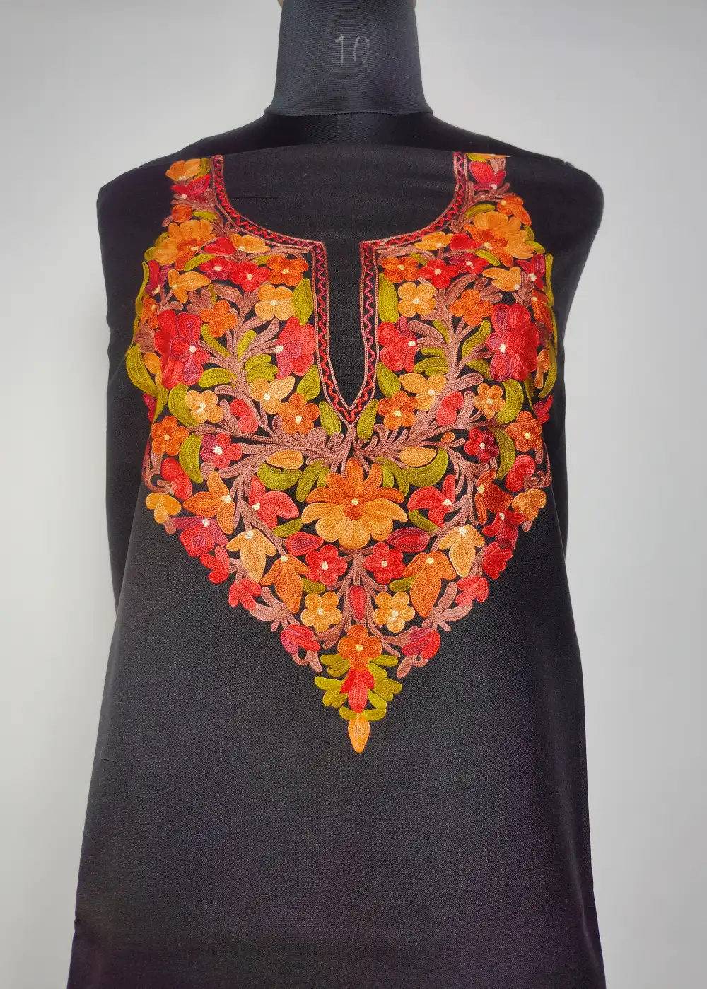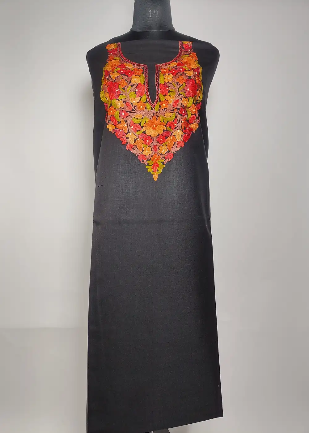 This classic Black salwar kameez suit in ruby cotton has beautiful posh bagh Aari embroidery done around the neckline, giving it a elegant and graceful finish. The fabric stays light and keeps you cool during warm weather. A good choice among decent suits for ladies and cotton summer suits, offered unstitched so you can tailor it to your comfort.