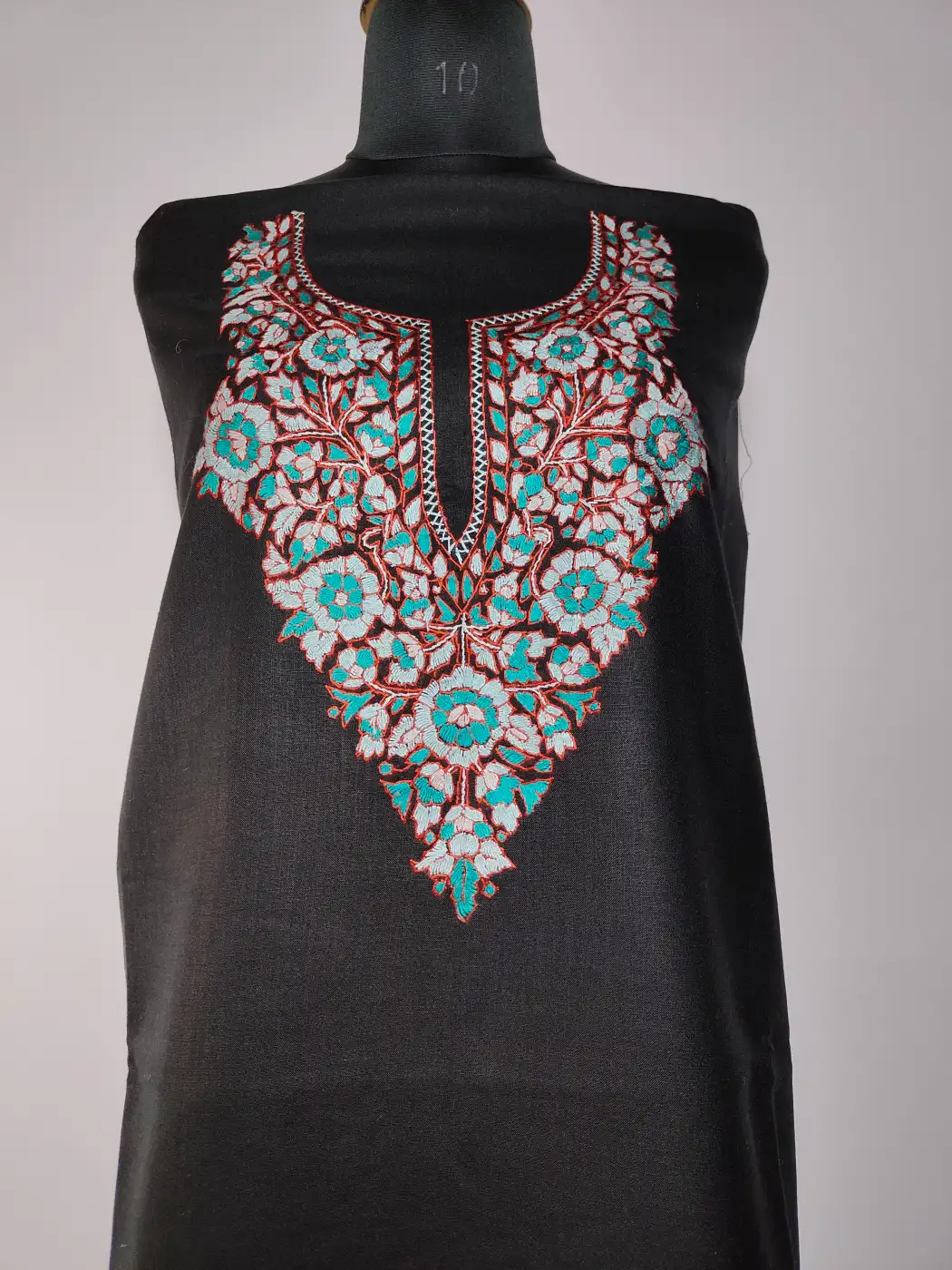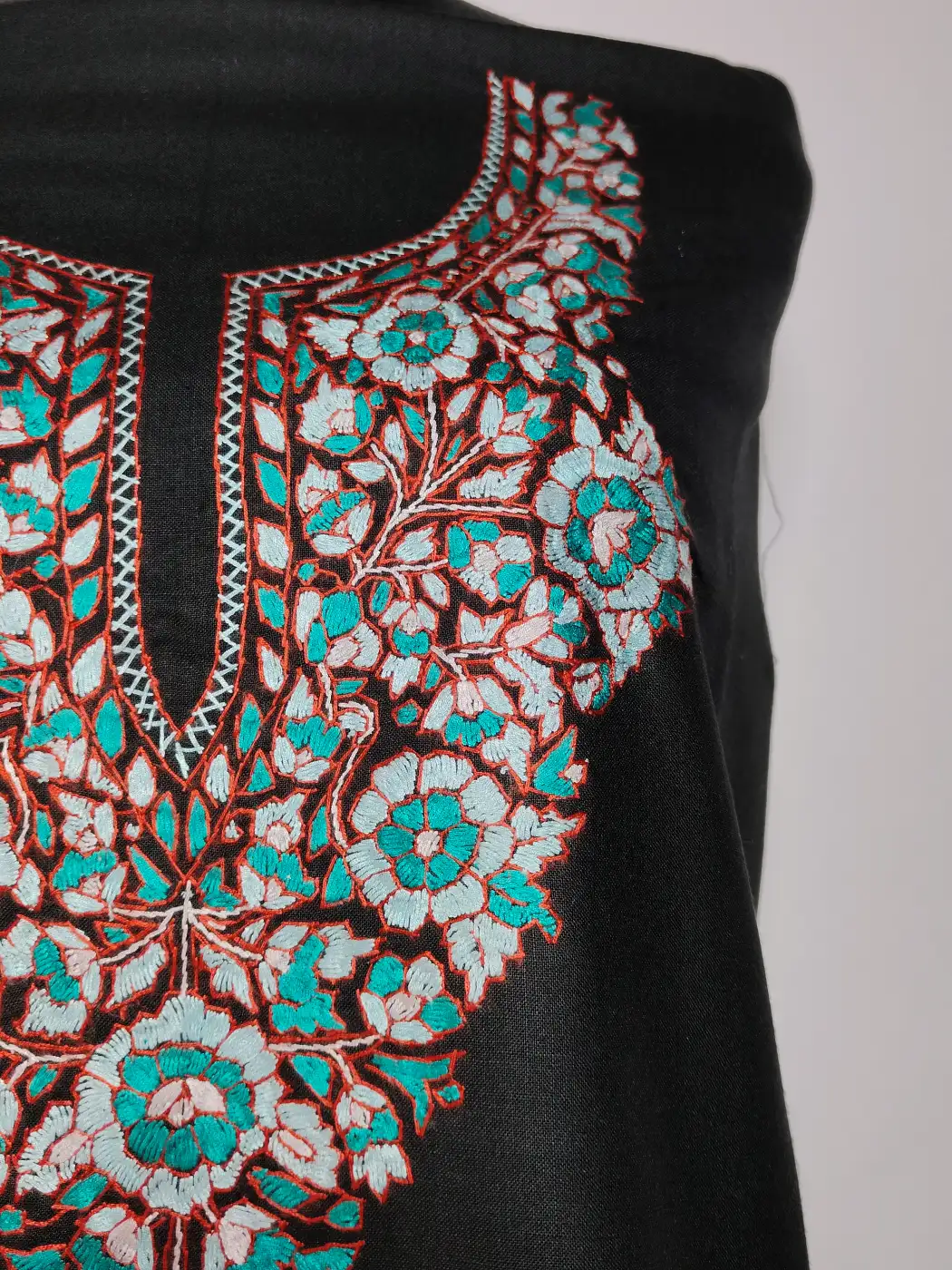 This one keeps things simple yet elegant. Floral hand sozni paper machie embroidery highlights the neckline, which stands out gently on black summer cool cotton. It comes as an unstitched 2pc salwar kameez, gives you the freedom to shape it into something that feels truly yours.