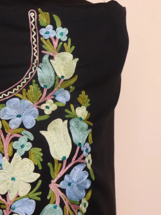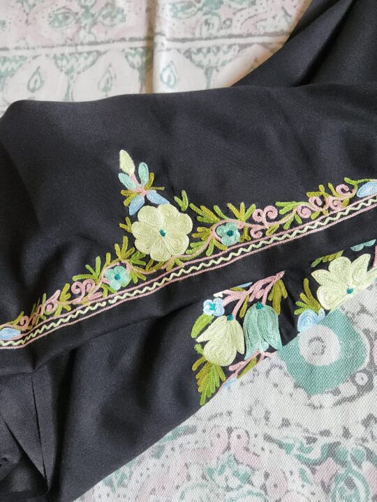 Easy to wear and easier to love, this black two-piece set in Summer Cool fabric is made for the warmer months, its Aari embroidery gives it a traditional yet fresh feel, whether it’s on the sleeves or lightly detailed on the trousers. It’s a fuss-free outfit that still feels special every time you put it on.