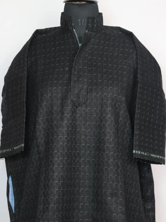 Kashmiri black colour faran comes in tweed, giving boys a warm and durable layer. It holds Kashmiri softness within a structured fall, created in chest size 52 inches and length 35 inches for neat, cosy winter dressing.