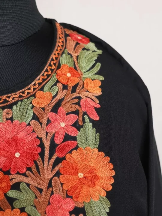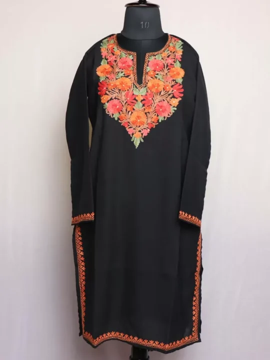 This is a beautiful black color summer kurta with aari embroidery. This is a long kurta for women.