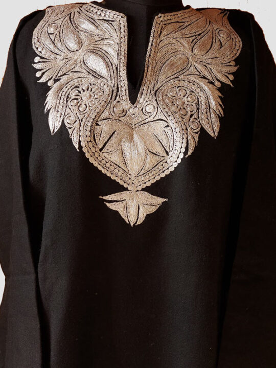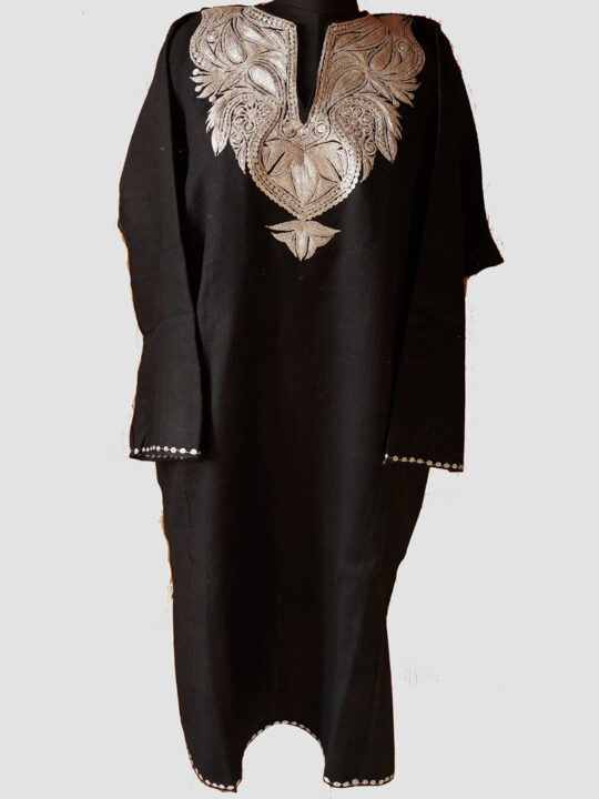 Note; Pheran is pure black and tilla is pure silver color. The picture has been taken in daylight hence some color distortions