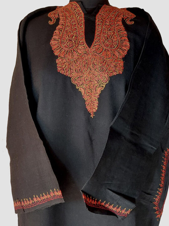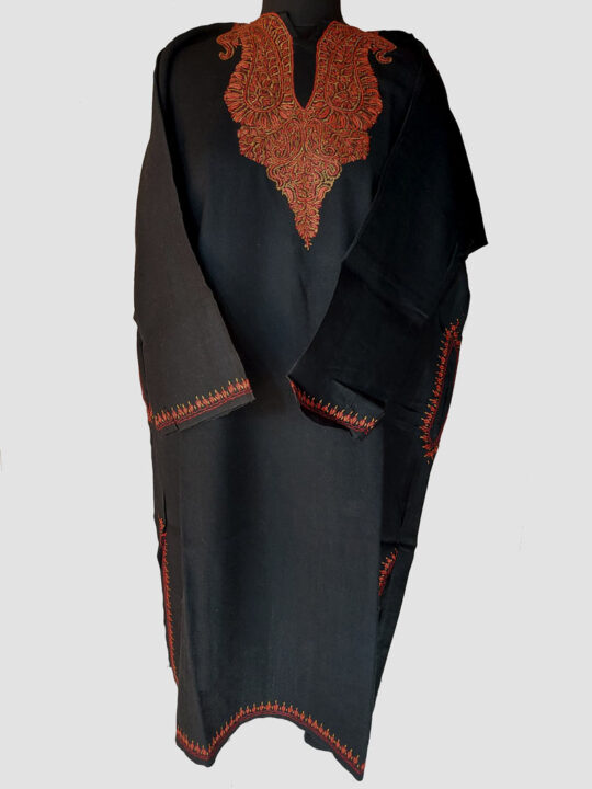 Black Raffal Wool Pheran With Beautiful Hand Sozni Work