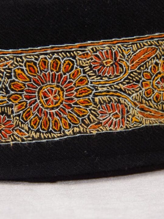 Black Shahi Pure Pashmina Hand Sozni Cap