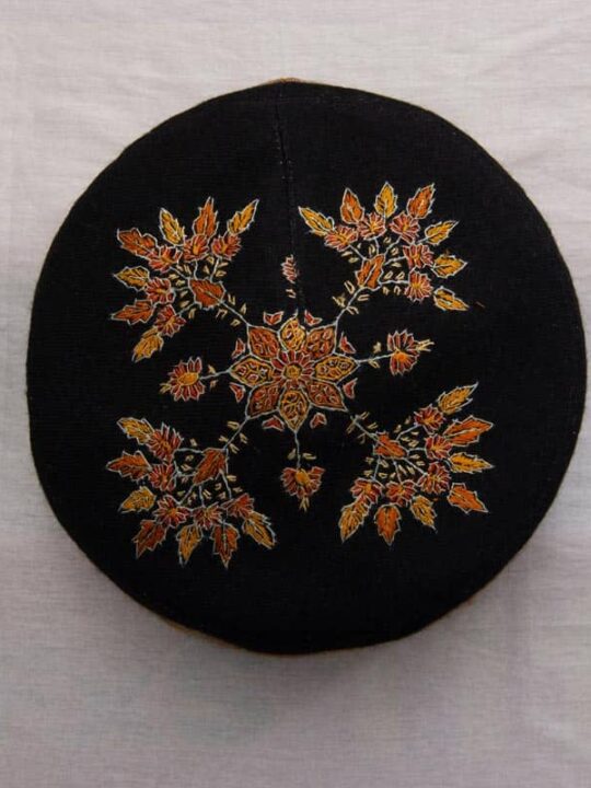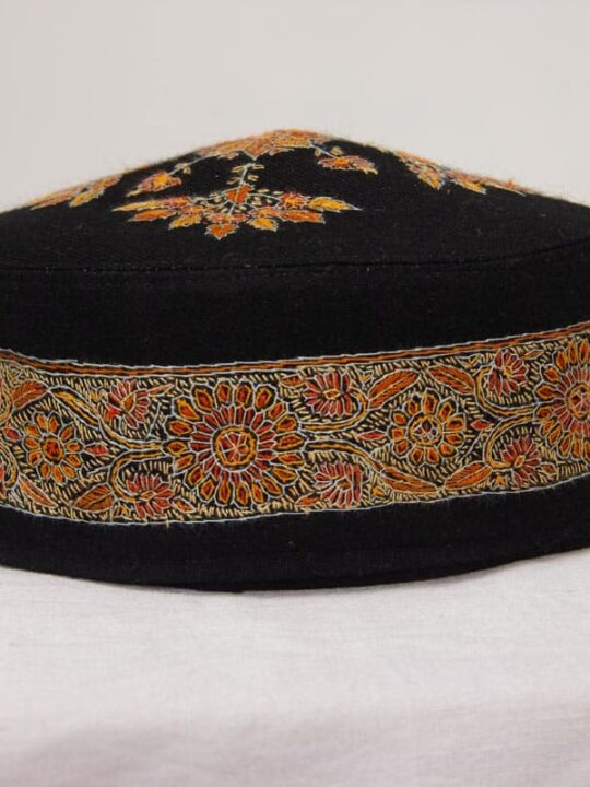 This is a beautiful made-in Kashmir pashmina cap or topi. Sozni embroidery on it has been done by hand by our skilled artisan