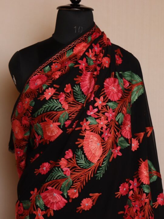 This Kashmiri Saree with ari embroidery is the embodiment of grace, elegance, and beauty.