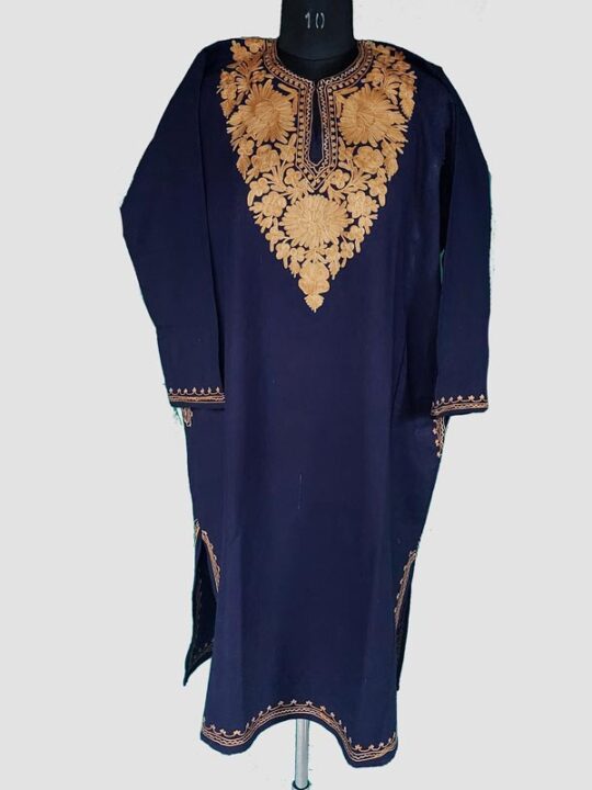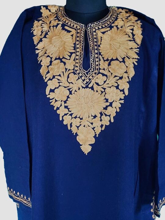 Blue Cashmilon Floral Aari Work Pheran