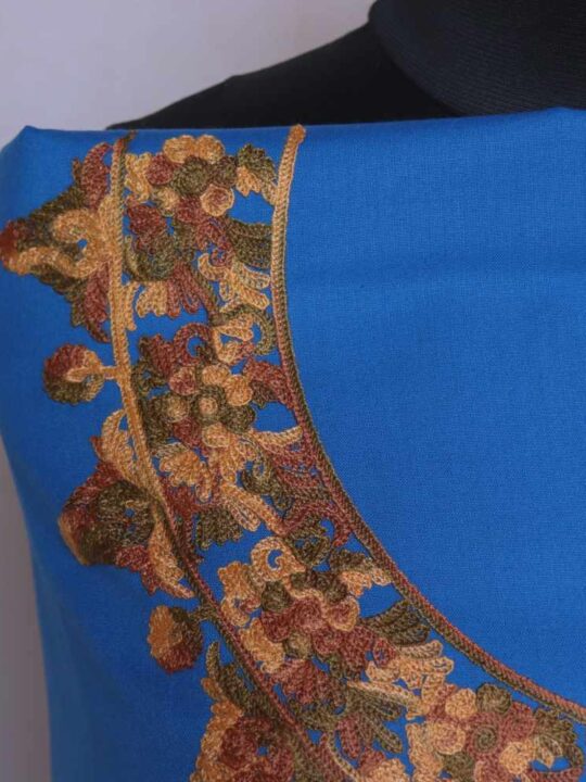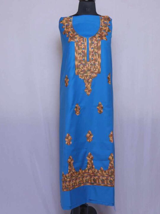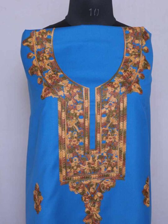 This is a beautiful Spun woolen unstitched 2pc salwar Kameez suit with Kashmiri aari work done on it. Dupatta not included.