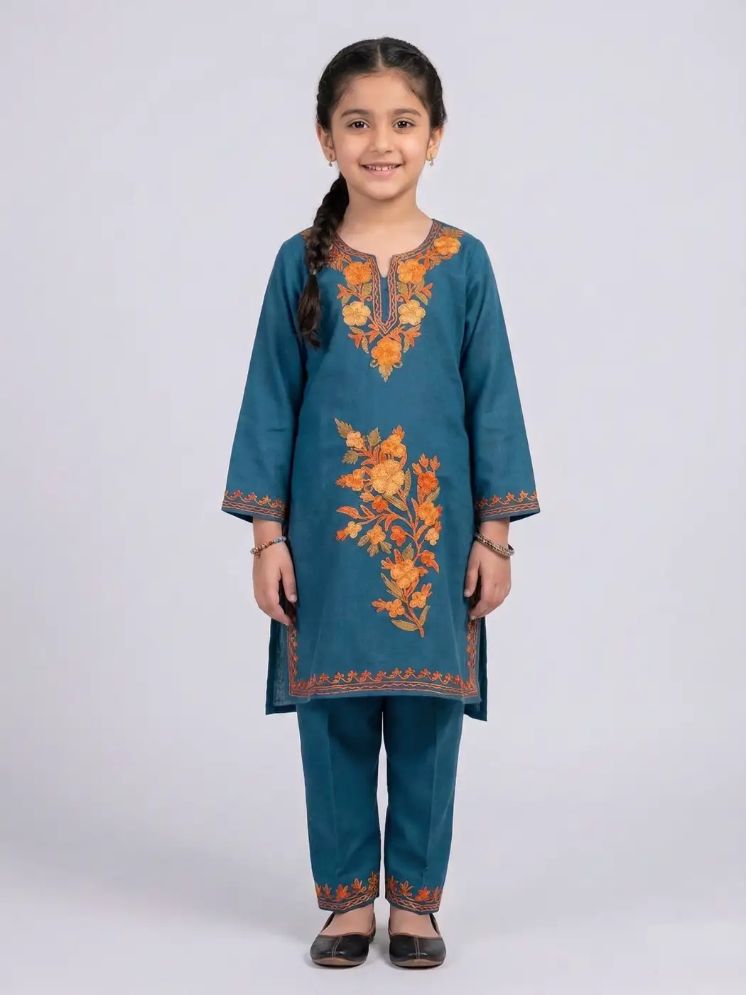 Beautiful Kashmiri dress for kids, perfect for school functions and occasional wear.