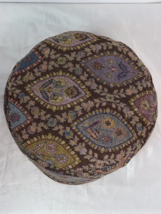 A handsome Kani cap, sized at 23.5inches and woven in the classic Kashmiri manner. Wear the Kani cap, to finish a traditional outfit, or gift it as a meaningful accessory. The Kani cap layers well under a coat and travels easily, which makes it a handy winter companion. Find this Kani cap among Kani cap online choices when you want simple warmth and style.