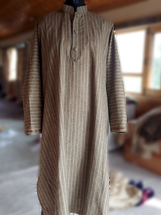 This pheran is made of premium tweed. This is in stock and can be dispatched tomorrow.