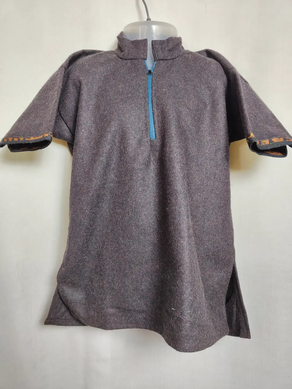 Soft Tweed wool in plain dark brown makes a kashmiri pheran for children, fitted to chest size 32 and length 22 inches for comfy movement. This kashmiri pheran keeps the neck simple and reads cozy and Kashmiri for running errands or school.