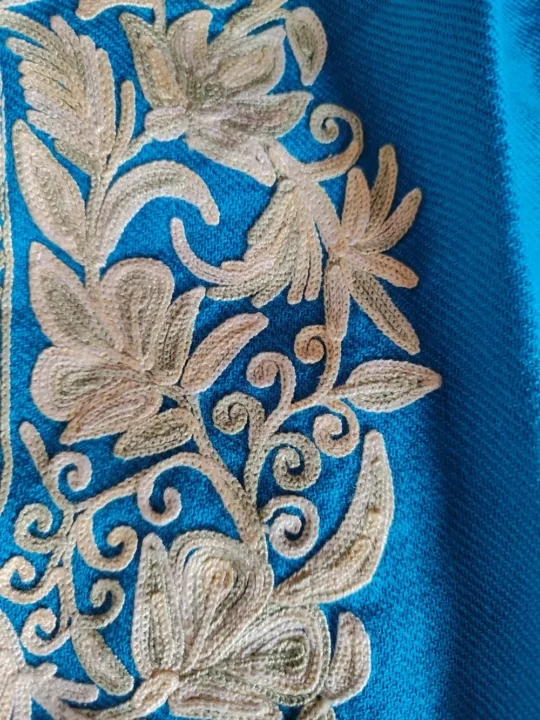 Designer Side Panel Blue Cashmilon Wool Pheran with Aari Embroidery