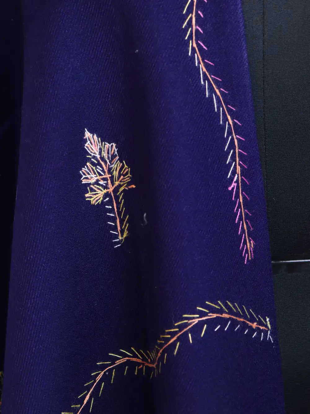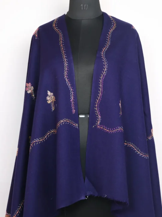 A women’s navy blue hand sozni shawl in Cashmilon Wool with continuous embroidered border and floral motifs at each corner — this navy blue hand sozni shawl carries careful threadwork and a soft, warming hand. At 1299, this piece offers a tidy Kashmiri weave that dresses up any winter outfit.