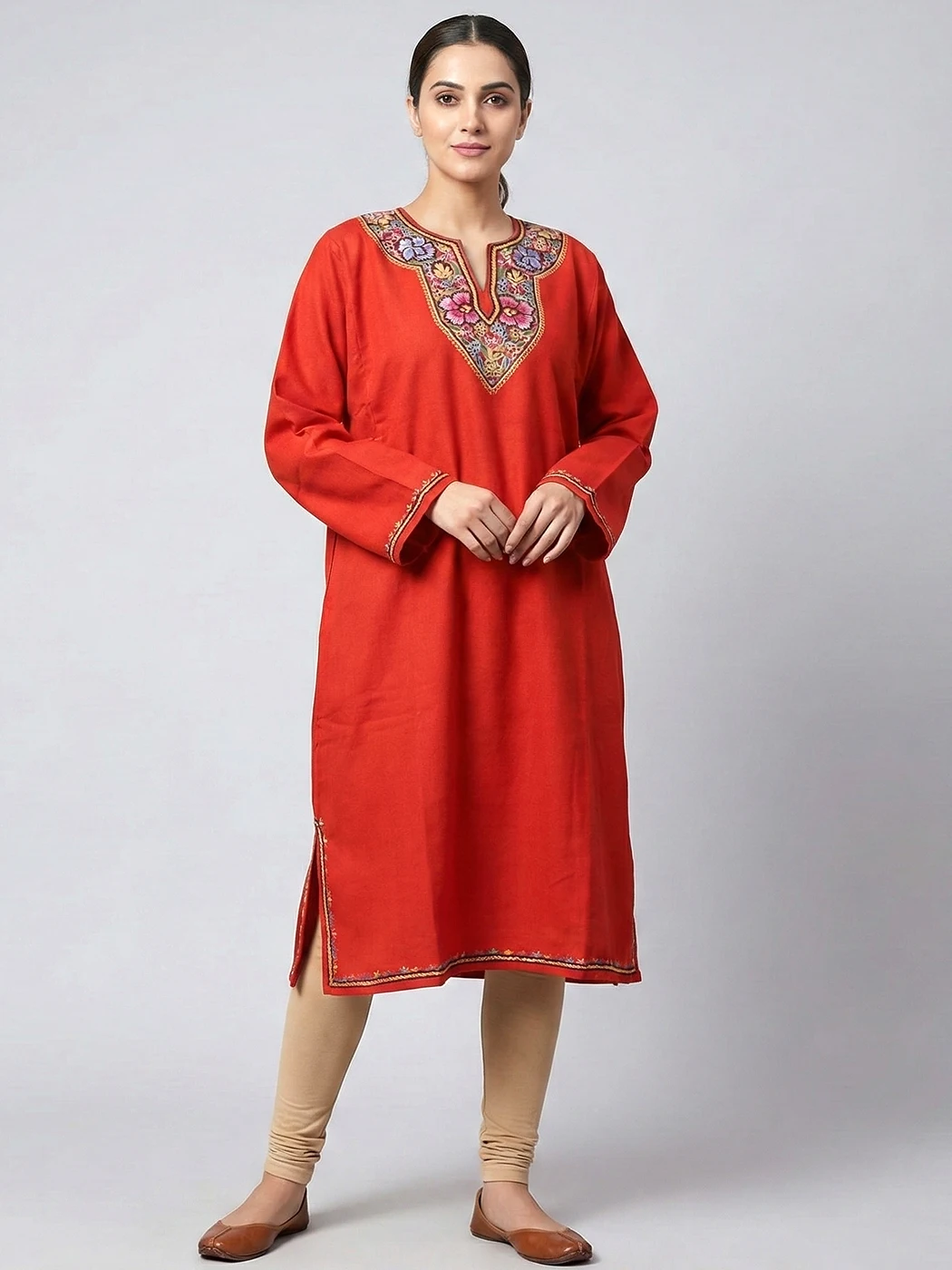 Note: The actual color of the pheran may differ slightly due to photography effects