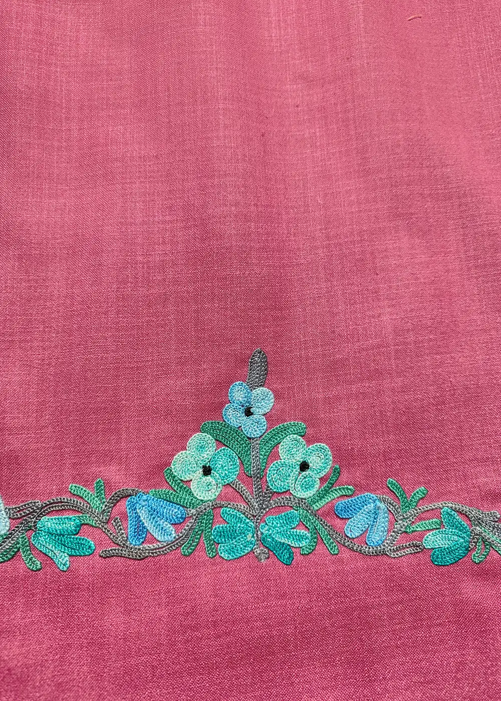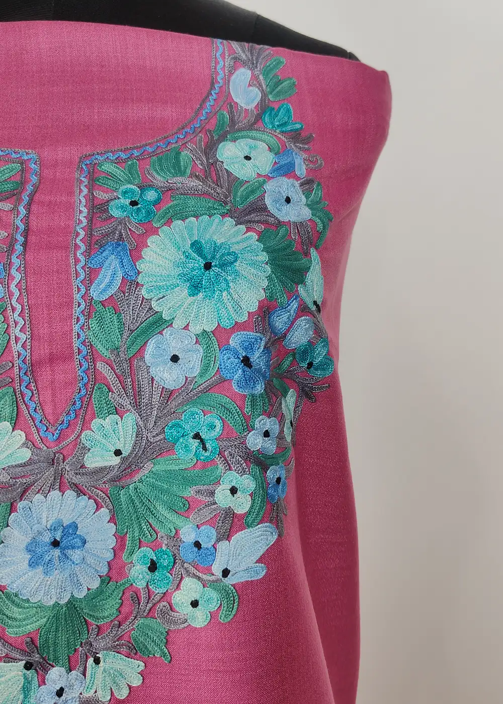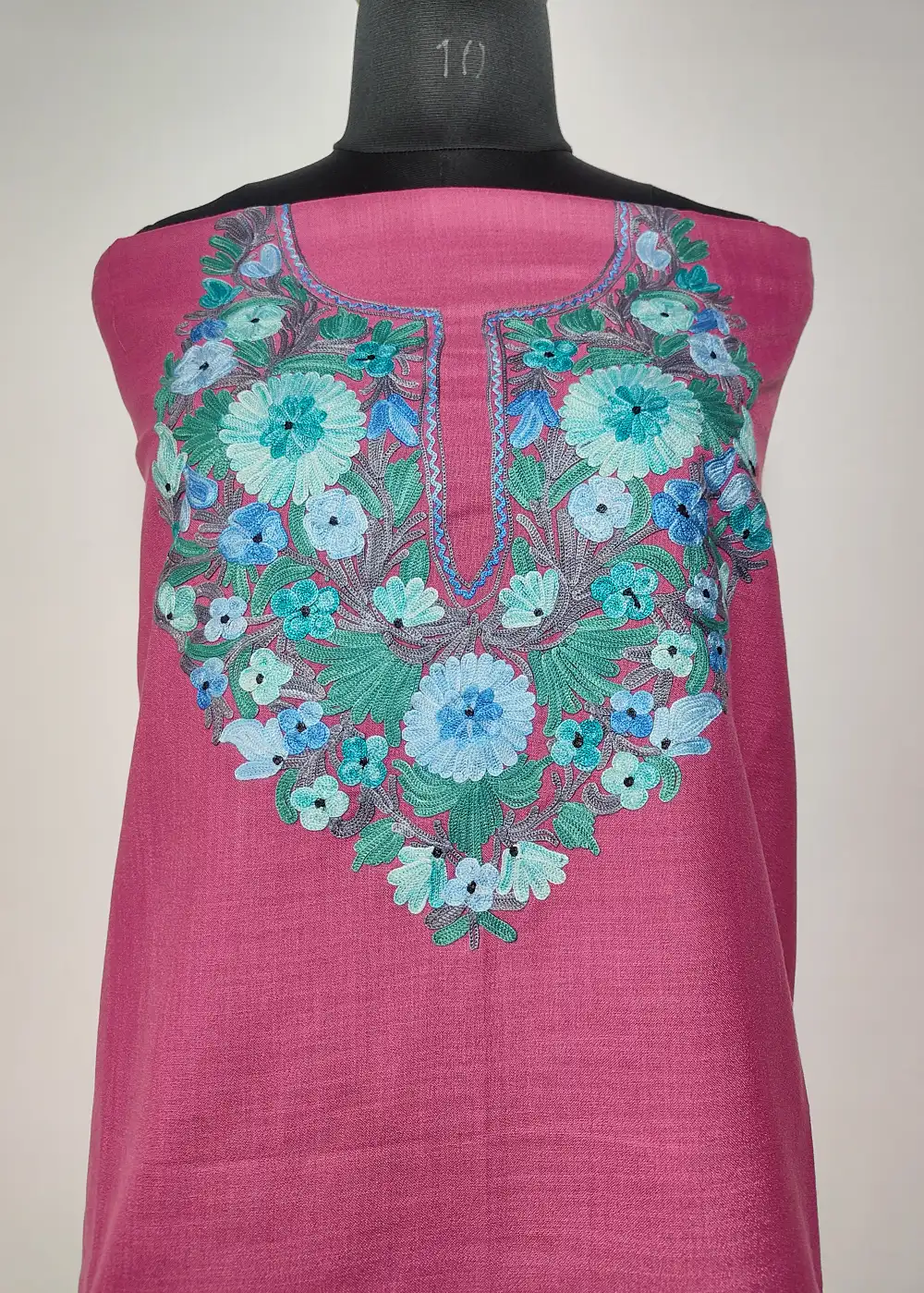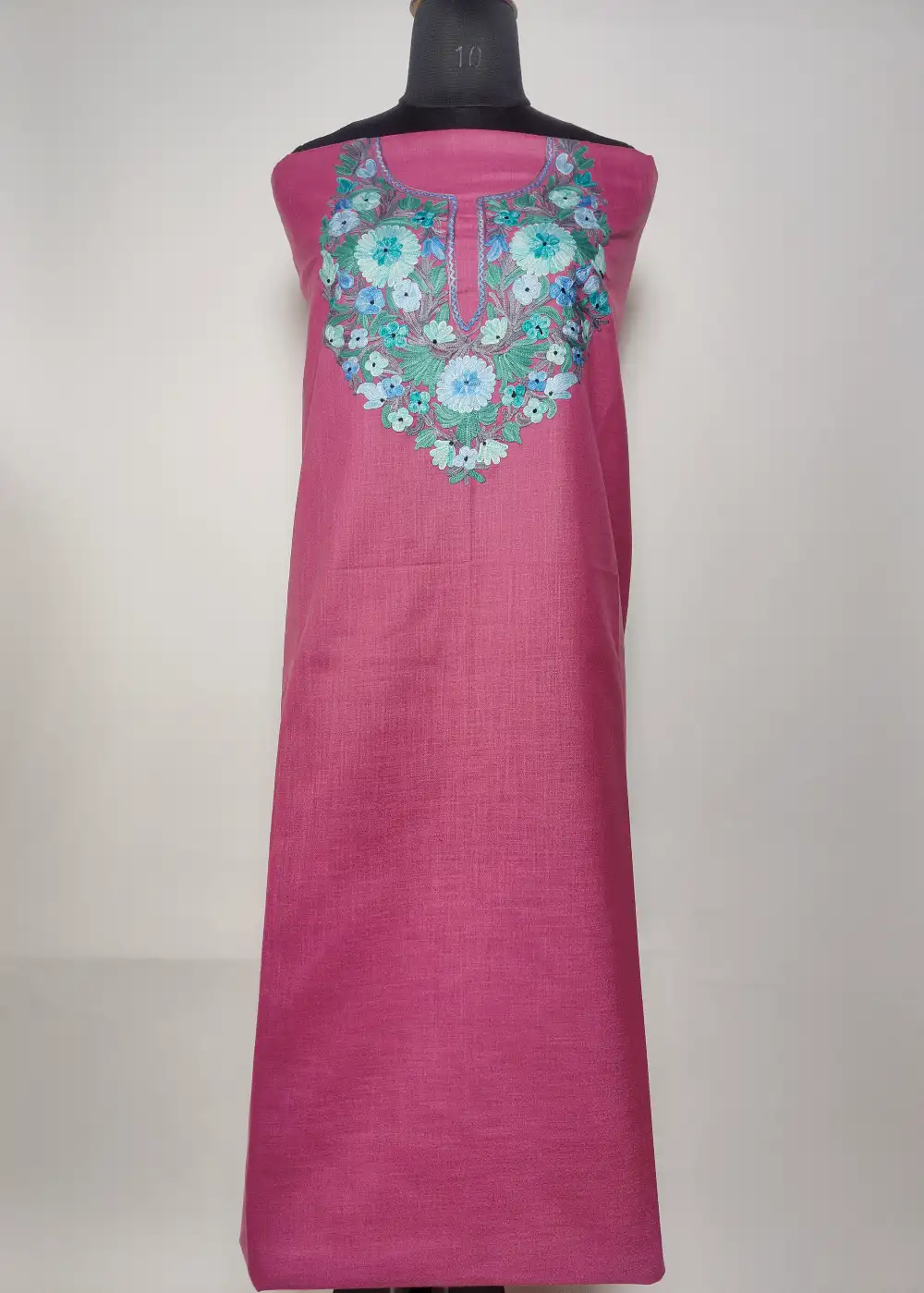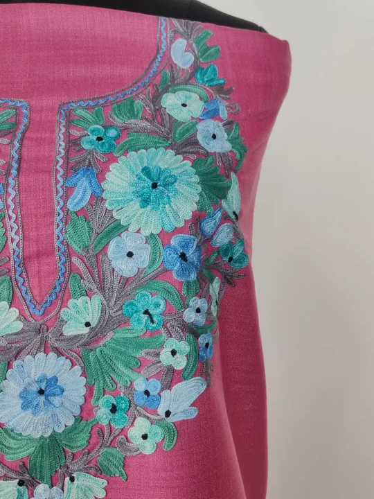 This unique Smitten Pink color traditional Kashmiri suits style ruby cotton fabric comes with detailed floral Aari kadhai around the neckline that adds a classic charm. The fabric stays breathable and helps you in staying cool during hot summer days. A lovely kashmiri suit material and kashmiri designer suits choice, provided unstitched for easy fitting.