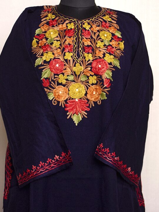 Dark Blue Cashmilon Phiren with Beautiful Aari