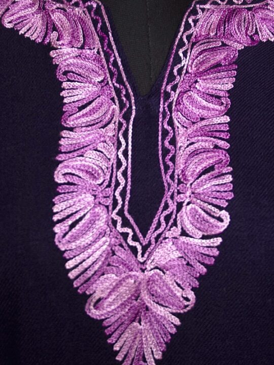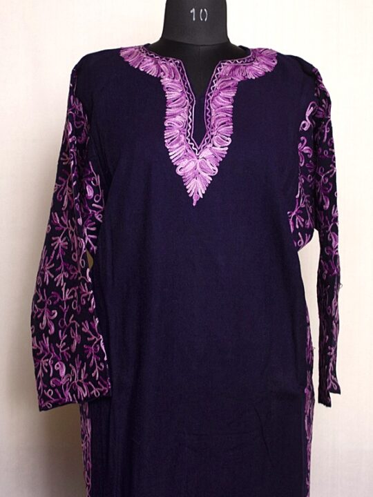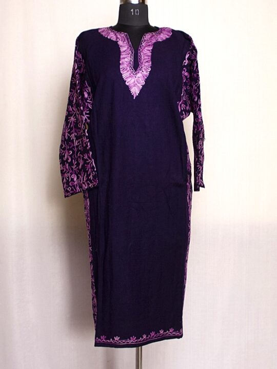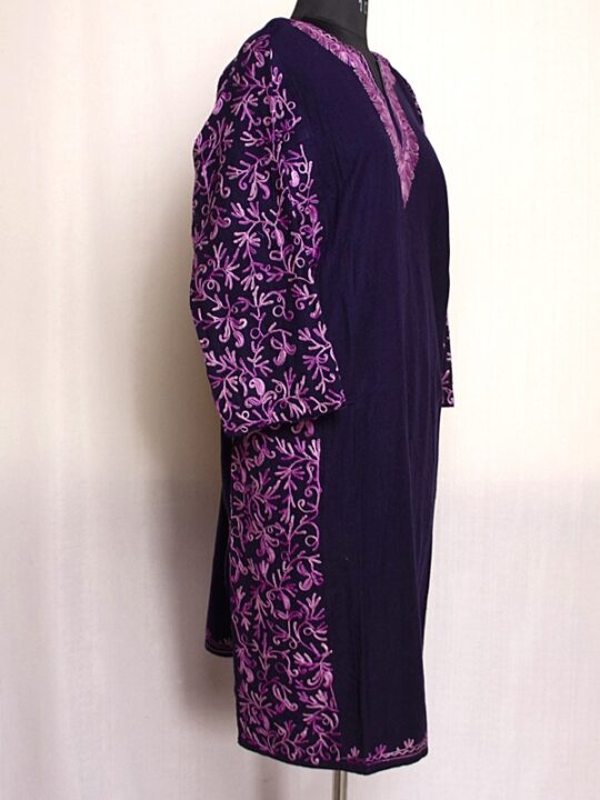 Dark Blue Cashmilon Sidepanel Pheran with Neat Aari