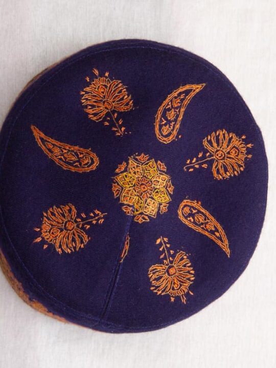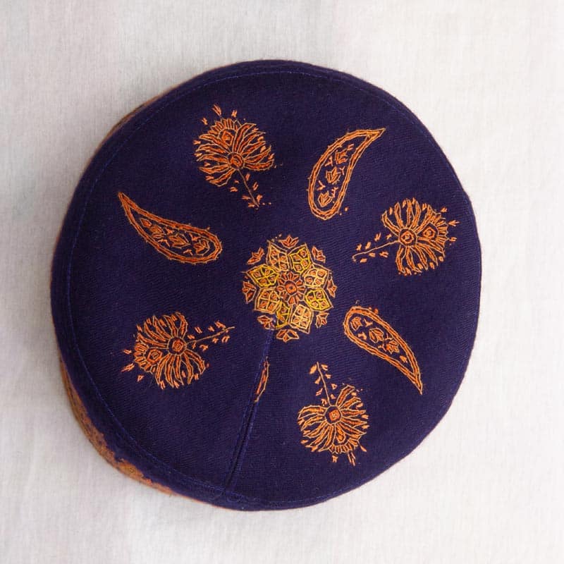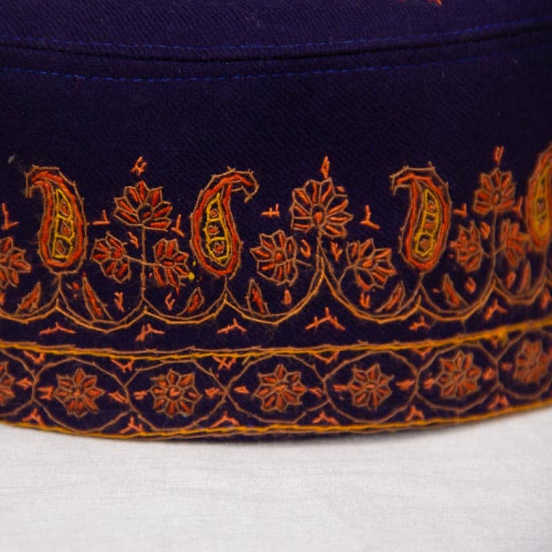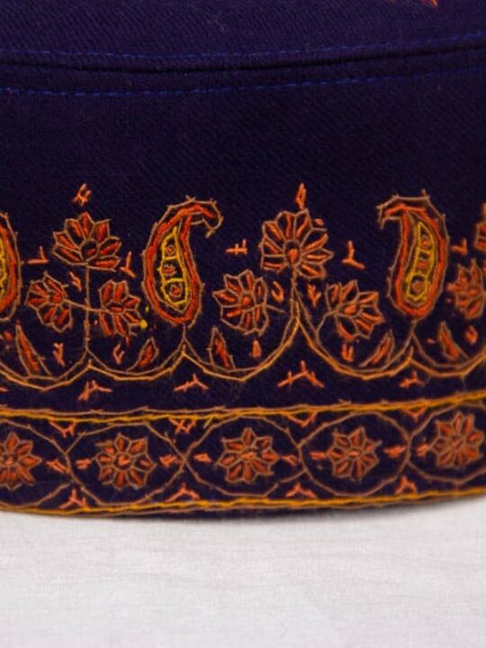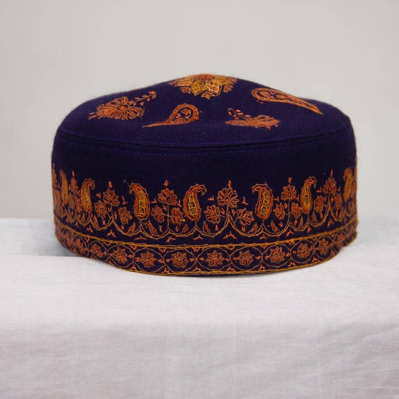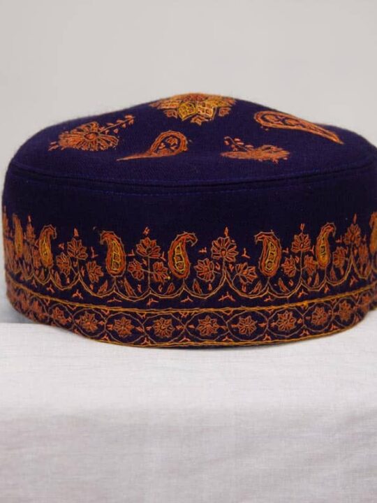 This is a beautiful made-in Kashmir pashmina cap or topi. Sozni embroidery on it has been done by hand by our skilled artisan