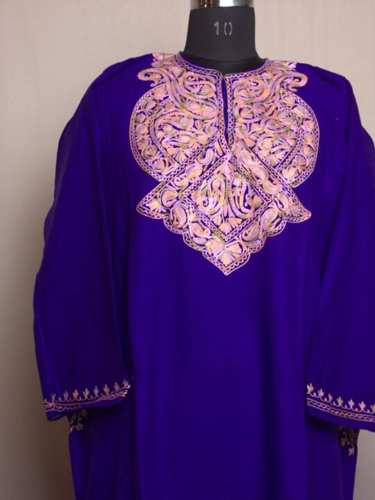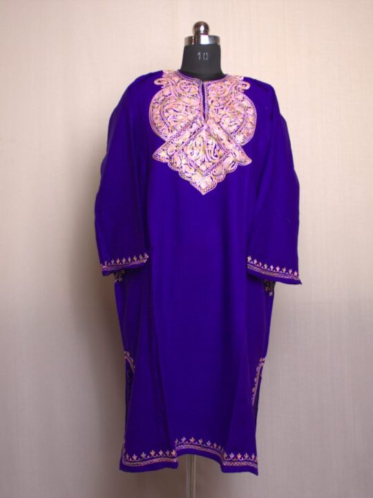 Dark Blue Rangi Aari Work Cashmilon Pheran