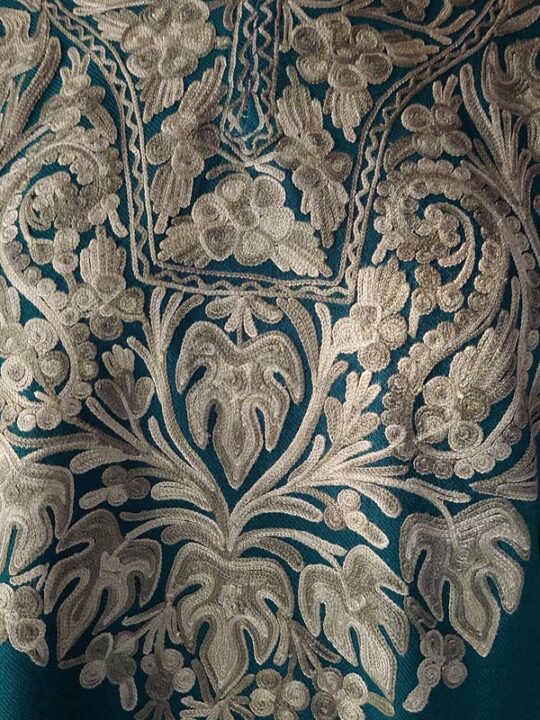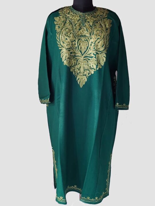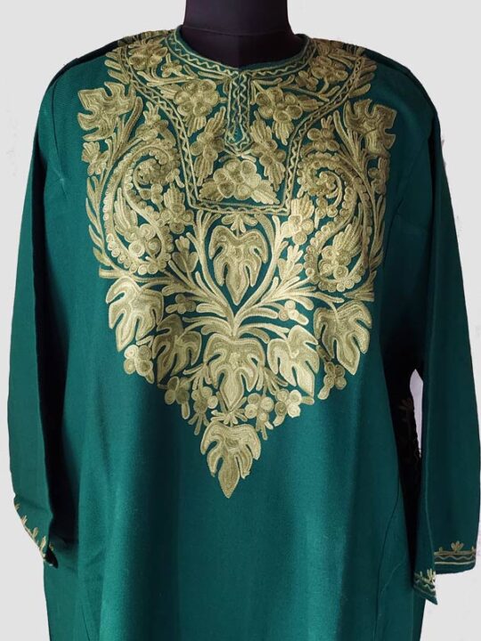 Dark Green Cashmilon Pheran with Chinar Leaf Aari Work