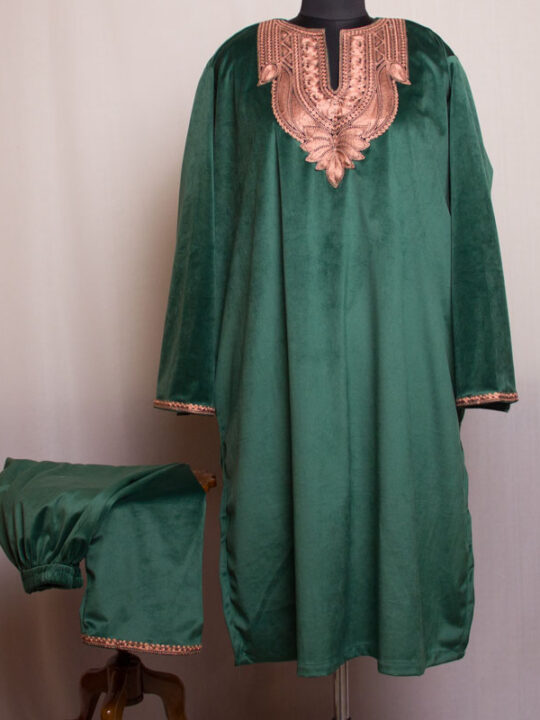 Dark Green Fine Velvet Tilla Pheran with Pant