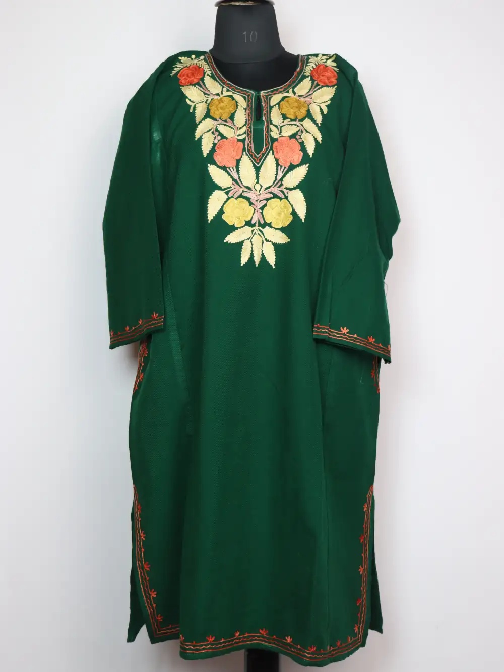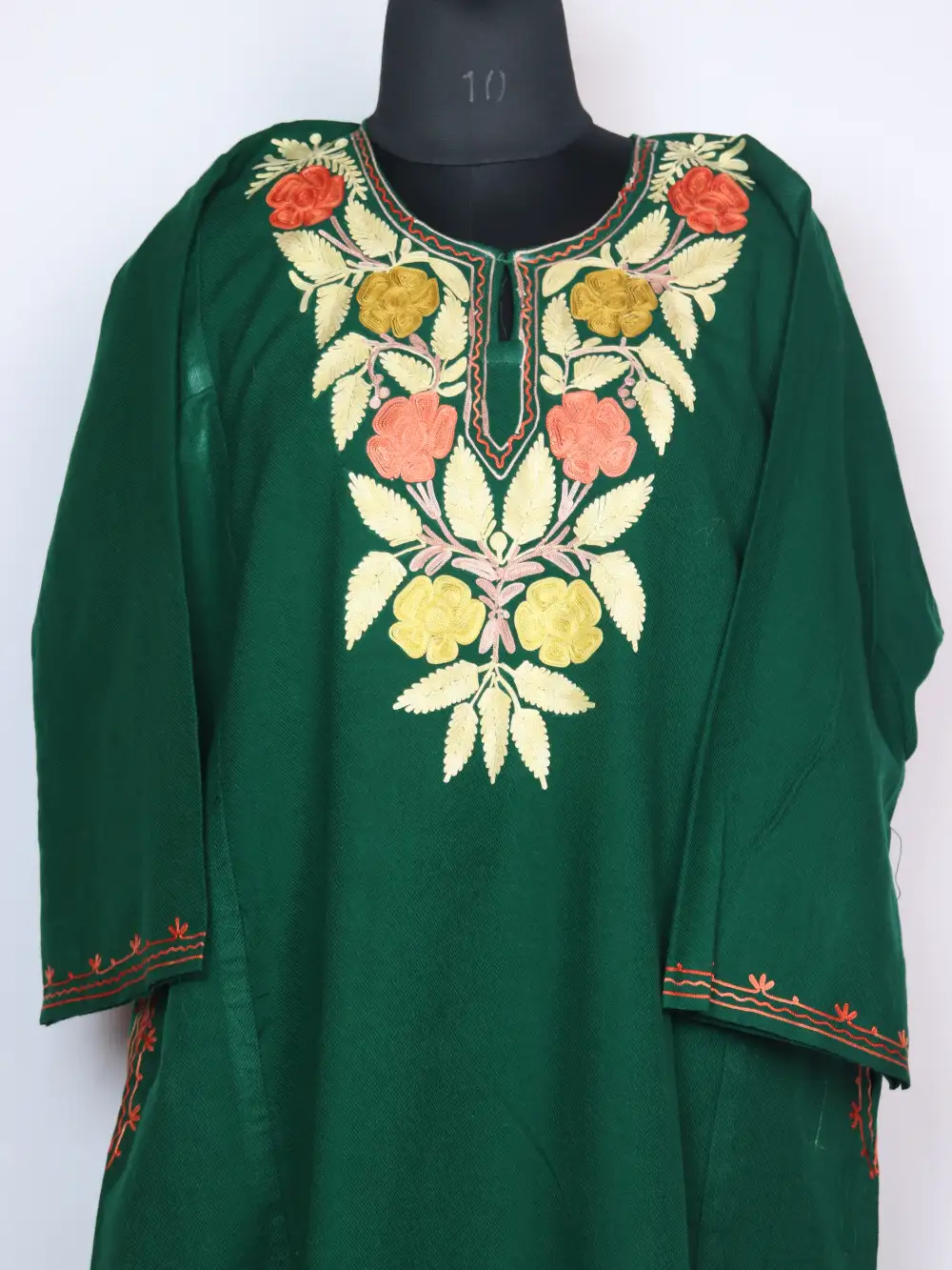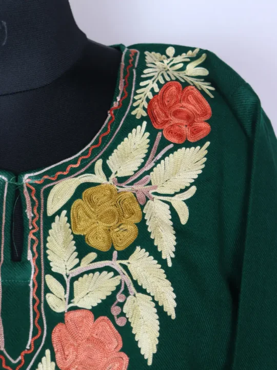 This warm cashmilon firan is designed with clean floral aari embroidery around the neck area, giving it a soft and elegant finish.