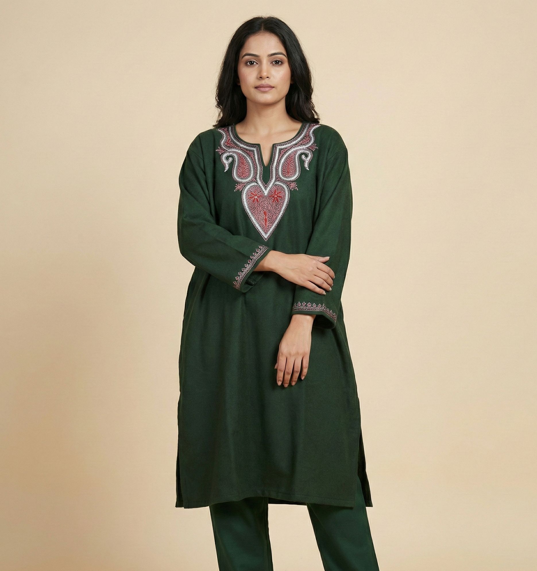Note: The actual color of the pheran may differ slightly due to photography effects