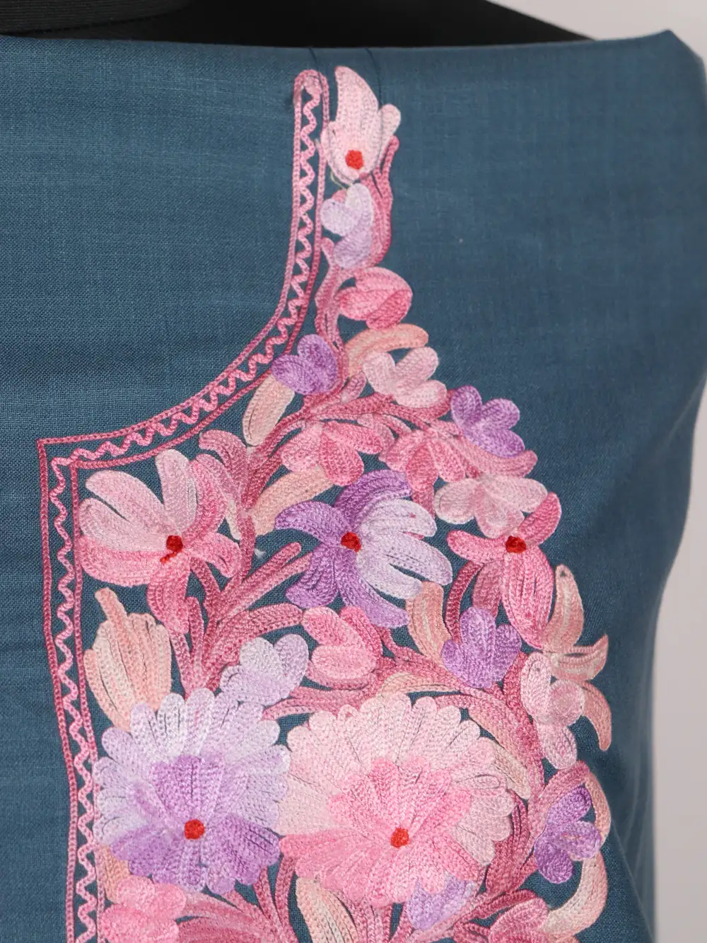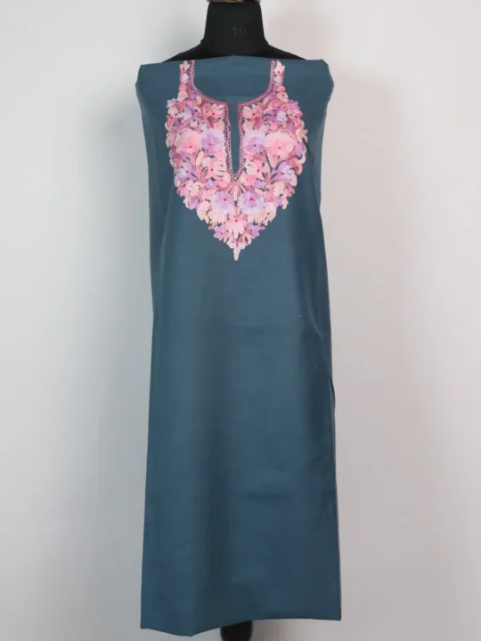 This dark grey Ruby cotton 2pc suit that arrives unstitched, it is ready to be tailored into your unique style. The neckline highlights Aari embroidery with pink floral and leaves motifs, adds a fresh, lively touch. The embroidery detail keeps it elegant while maintaining comfort in the fabric. It is a versatile pick, it can be shaped into an outfit that feels both personal and timeless.
