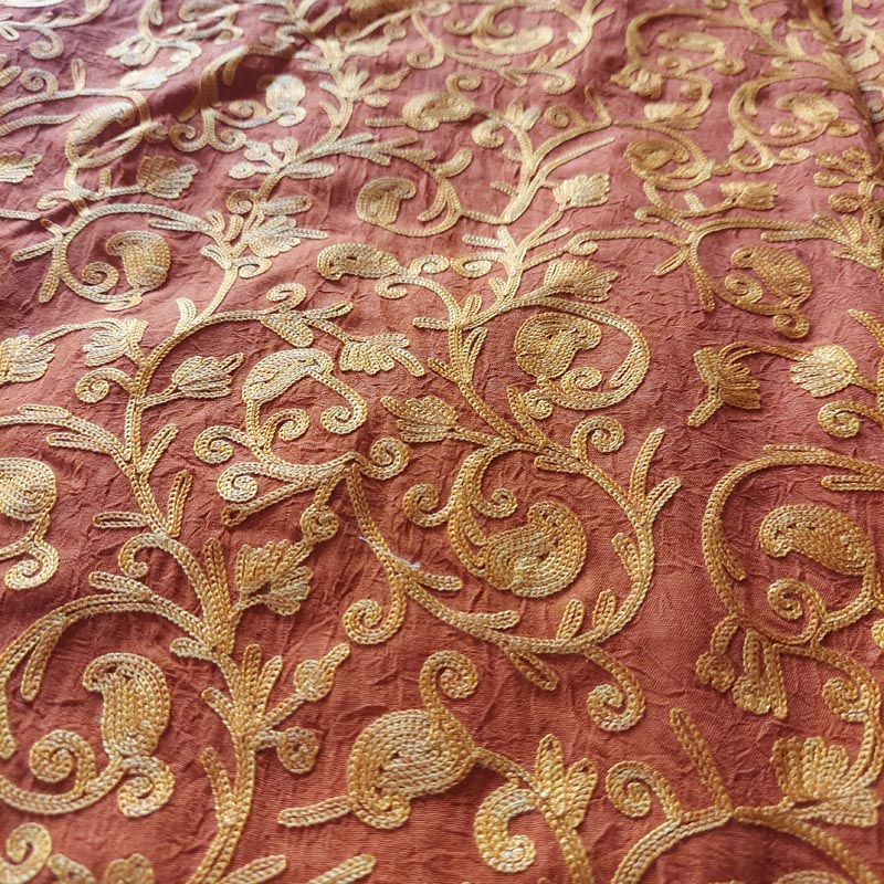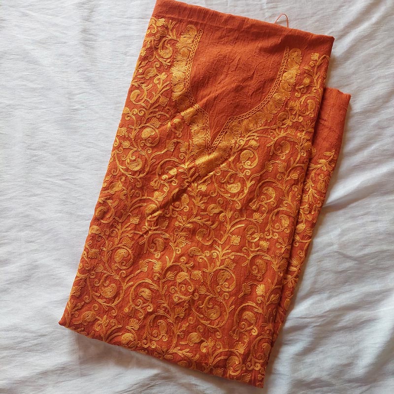 This is a beautiful crush cool cotton unstitched 2pc suit with machine aari work done on it.