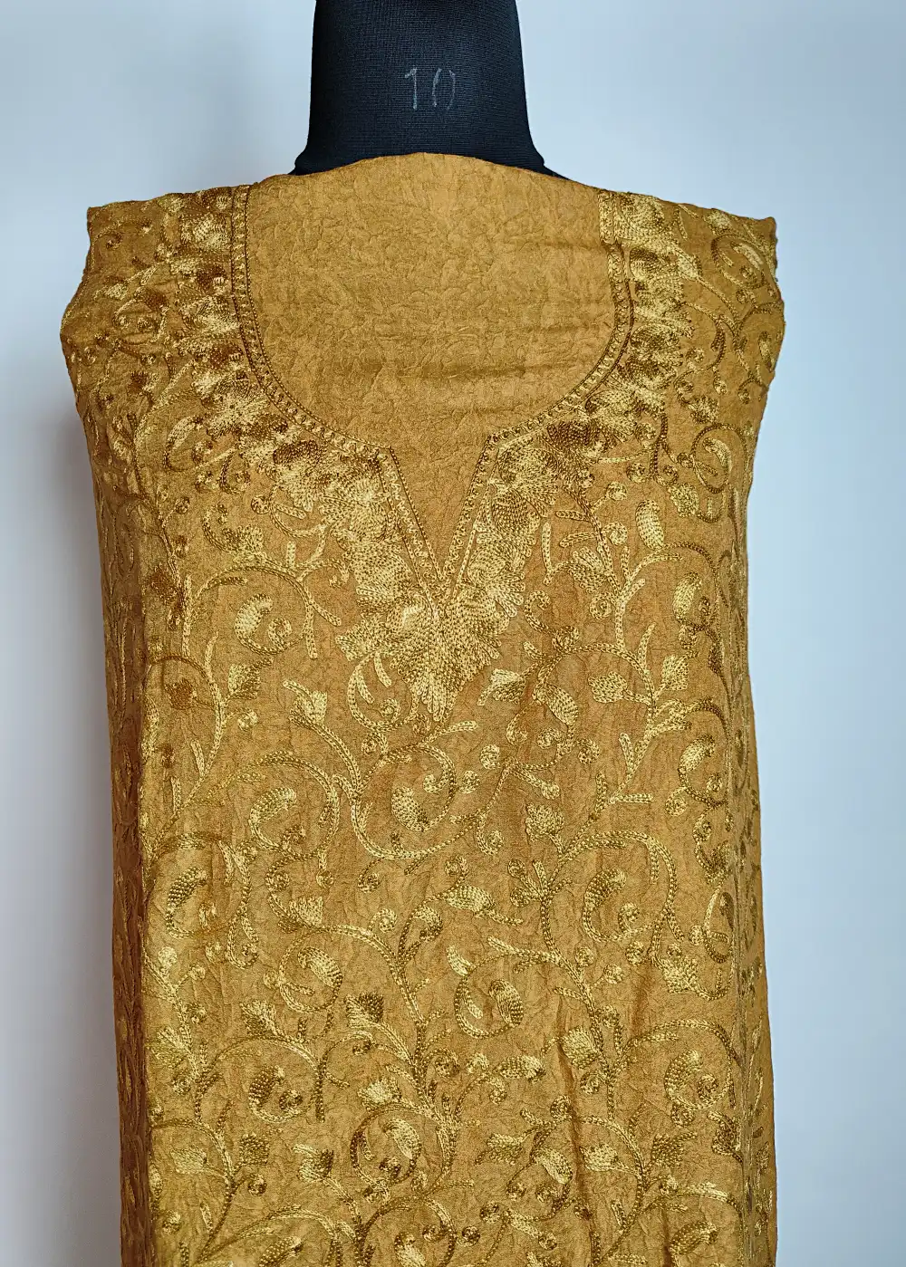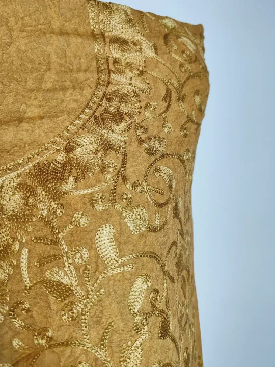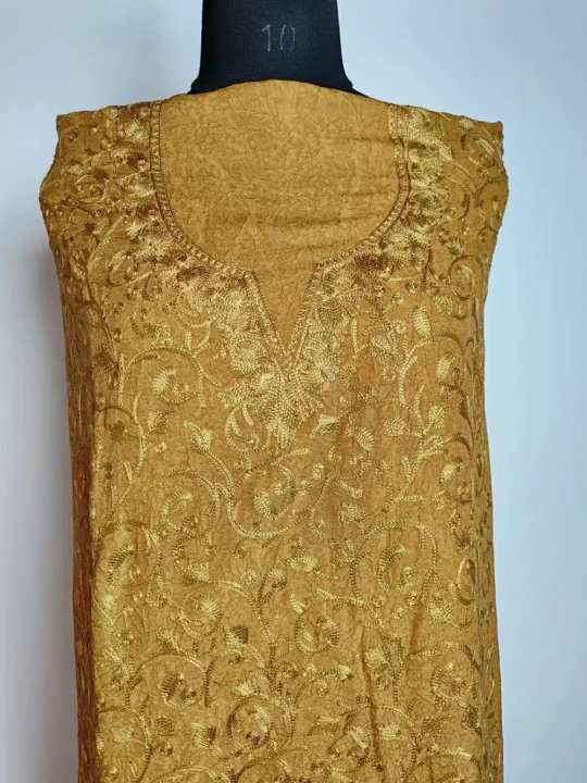 This Desert Brown Kashmiri salwar suit comes in soft crush cotton with detailed badaam jaal spread all over the cloth. The neckline embroidery keeps the design graceful and balanced. A classic Kashmiri designer suit that you can customize as per your own style.