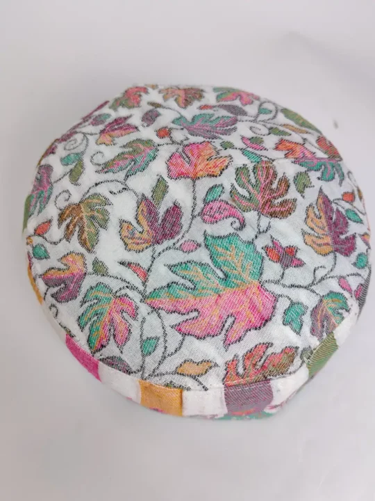 Shaped in Kani Shawl fabric, this white colour designer cap offers a smart form and sleek finish. Its striped and chinar designs bring cultural charm and handcrafted beauty.