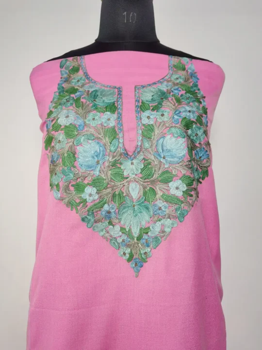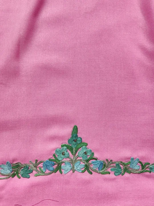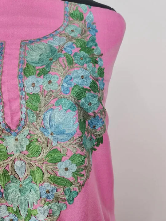 Long Pink Kashmiri Ruby Cotton Kurta Set with Aari Embroidery Abeer